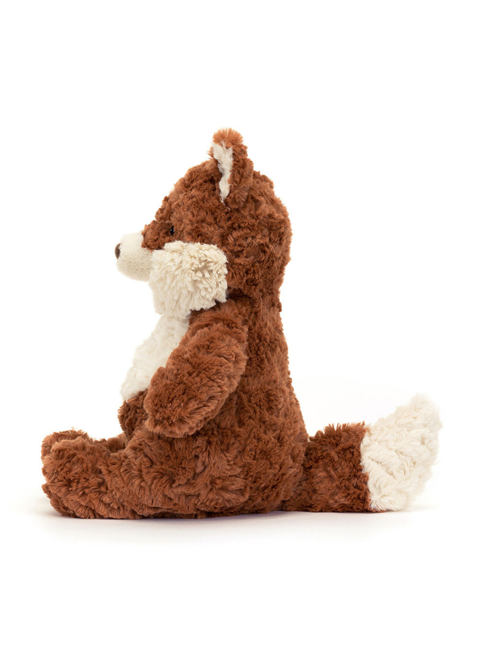 Mortimer Fox is very tousled. A brick-red cub with tufty cream cheeks, cuddly haunches and a huge chunky tail, Mortimer's endlessly huggable. With two-tone ears, a brown suedette nose and a gorgeous mussed tummy, this fox is a favorite.