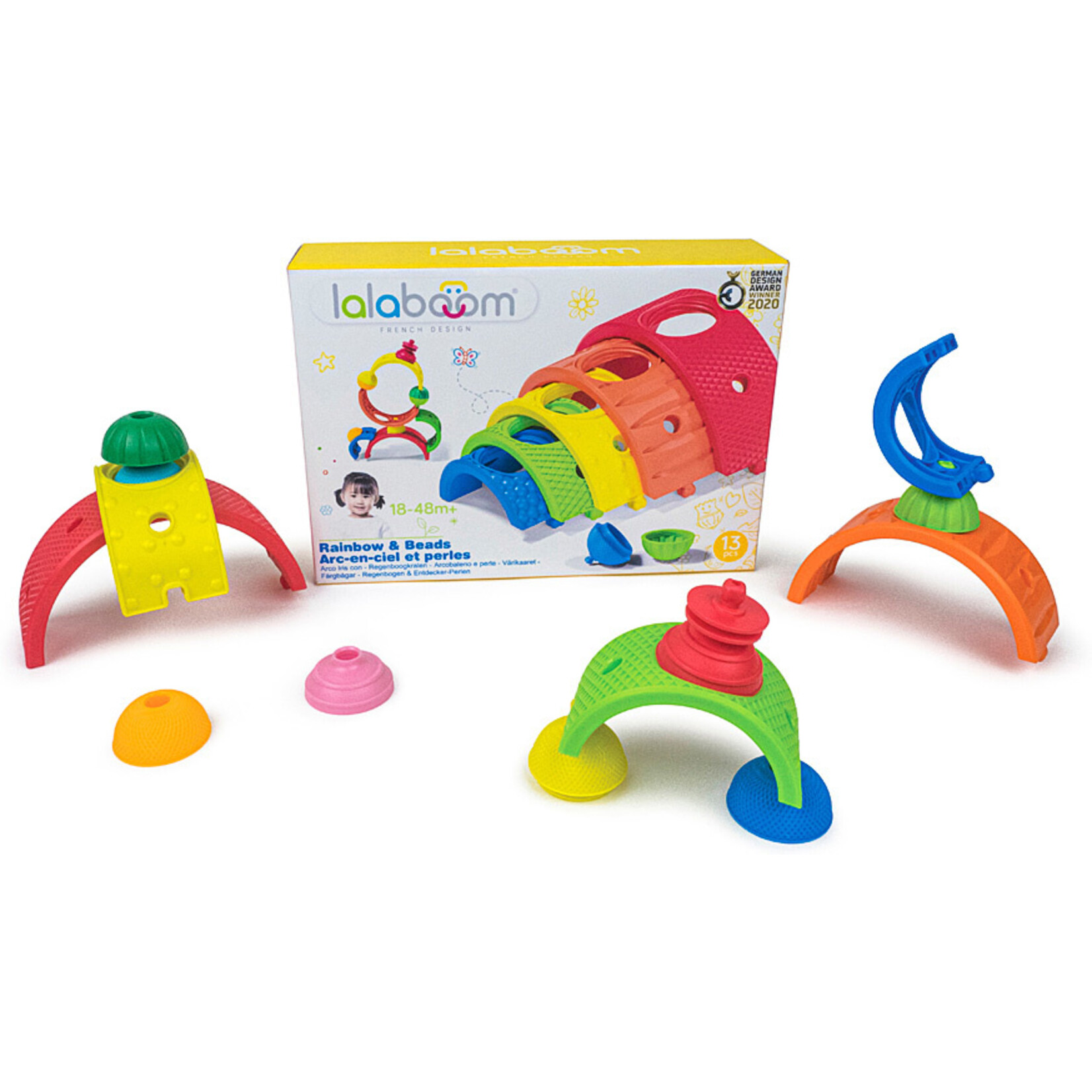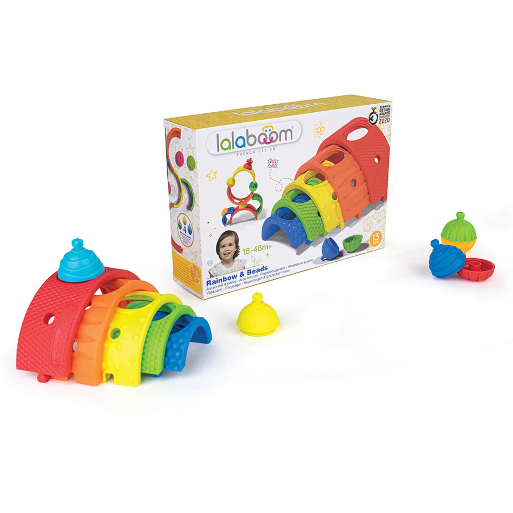 Small kids LOVE to put things together, just to take them apart! These 13 colorful pieces 'pop' together in all kinds of ways. Twist, mix, match and stack the arches and beads to create a whole new look to open play. Educational and stimulating, and even dishwasher safe! Includes 5 Arches and 4 separable beads for loads of creative fun.