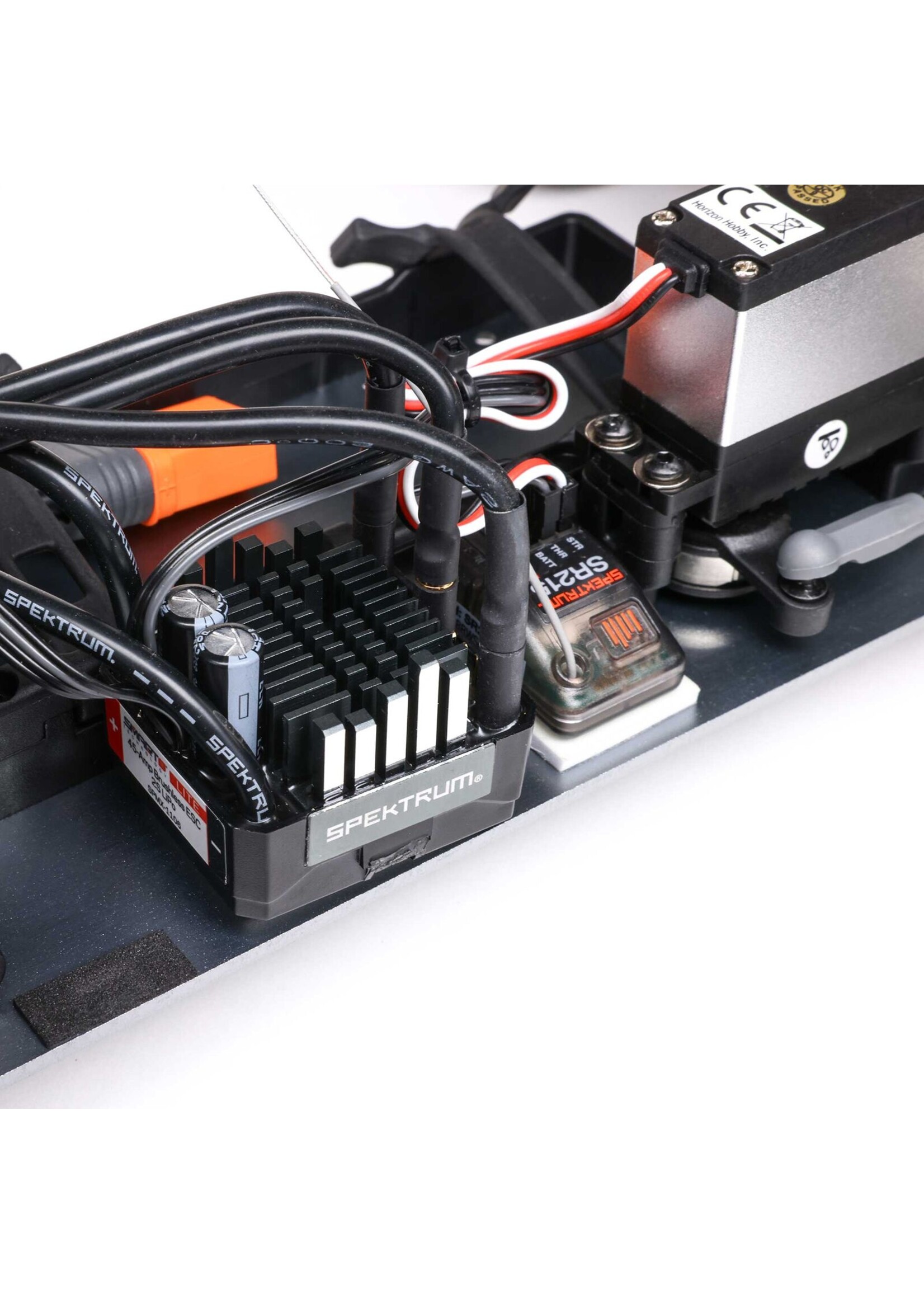 An aluminum chassis, steel turnbuckles, and all-metal transmission provide the durability to survive intense competition on a crowded dirt oval course. The sealed gear differential is pre-filled with diff fluid for optimal performance. A customizable battery tray increases your battery options, with adjustable stops for using full-length or shorty packs. The installed Spektrum 2S brushless system powers the 22S Sprint around the oval, hitting 25+ mph down the chutes.